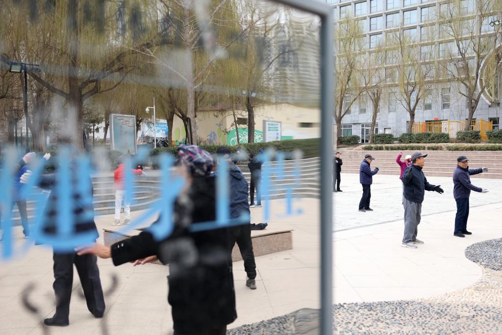 3月18日,市民在蘭州市體育公園的廣場(chǎng)上鍛煉身體。新華社記者 陳斌 攝