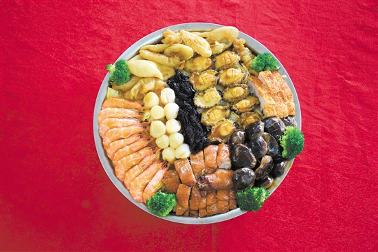 盆菜,“一盆一宴,薈萃百味”,因多盛于木盆或錫盆而得名。據(jù)傳起源于南宋末年,當(dāng)?shù)孛癖妼⒓抑凶钫滟F的食物貢獻(xiàn)出來,“煮盆菜,犒皇師”流傳甚廣。經(jīng)過幾百年來南粵人的總結(jié)、精研與傳承,盆菜食材越來越講究、制作技藝越來越精湛。