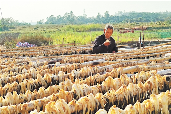 由白菜曬成的菜干素以“甜、軟、甘”出名,臺(tái)山市水步鎮(zhèn)蜆坑村村民曬制的菜干聞名遐邇。