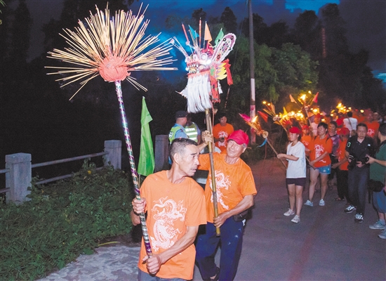 近日,新會區(qū)雙水鎮(zhèn)嶺頭村舞起了蕉樹龍,形似一條火龍,場面壯觀,吸引了不少人參觀。