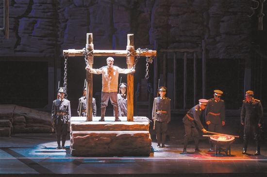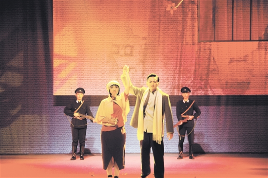 “頭可斷,肢可折,革命精神不可滅。壯士頭顱為黨落,好漢身軀為群裂!”“現(xiàn)在我們要結(jié)婚了,讓這刑場(chǎng)作為我們結(jié)婚的禮堂!讓反動(dòng)派的槍聲,作為我們結(jié)婚的禮炮吧!”舞臺(tái)上,“周文雍”一番鏗鏘有力的話語贏得了陣陣熱烈的掌聲,信仰之美、忠誠之美、崇高之美震撼觀眾的心靈。