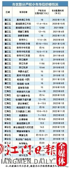 ????江門市發(fā)展和改革局價(jià)格科相關(guān)負(fù)責(zé)人曾表示,江門的車位價(jià)格近年來相對(duì)穩(wěn)定,相對(duì)珠三角其他城市便宜不少。目前,每個(gè)標(biāo)準(zhǔn)車位的均價(jià)約為15萬元。